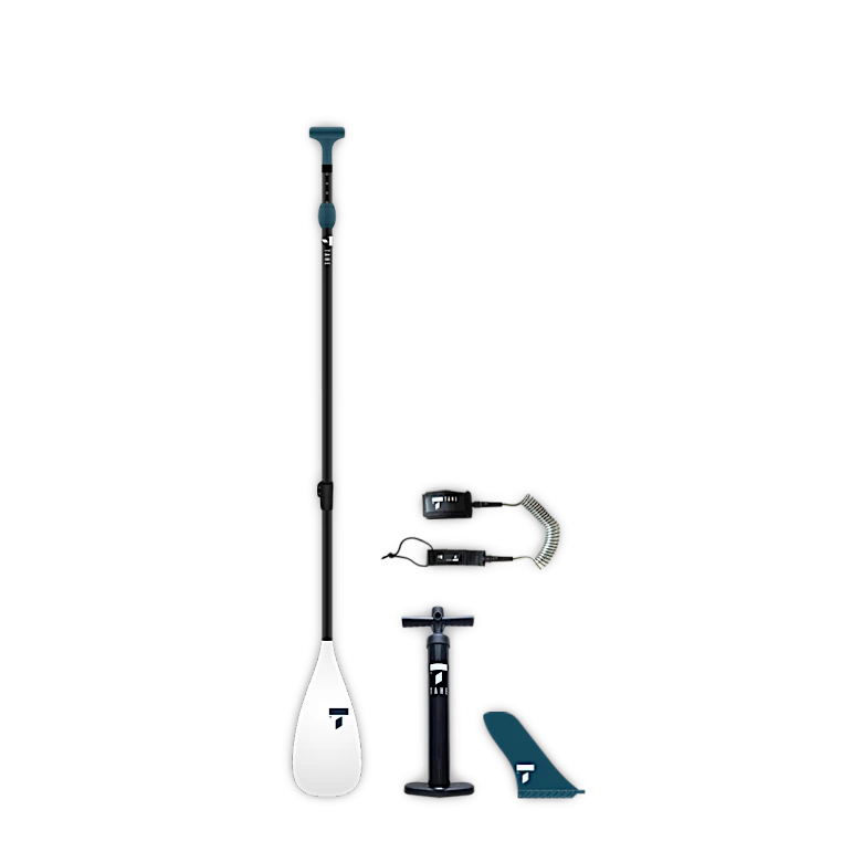 Livré en Pack avec un son sac et sa pompe double action + un leash coil et une pagaie 3 parties réglable aluminium.